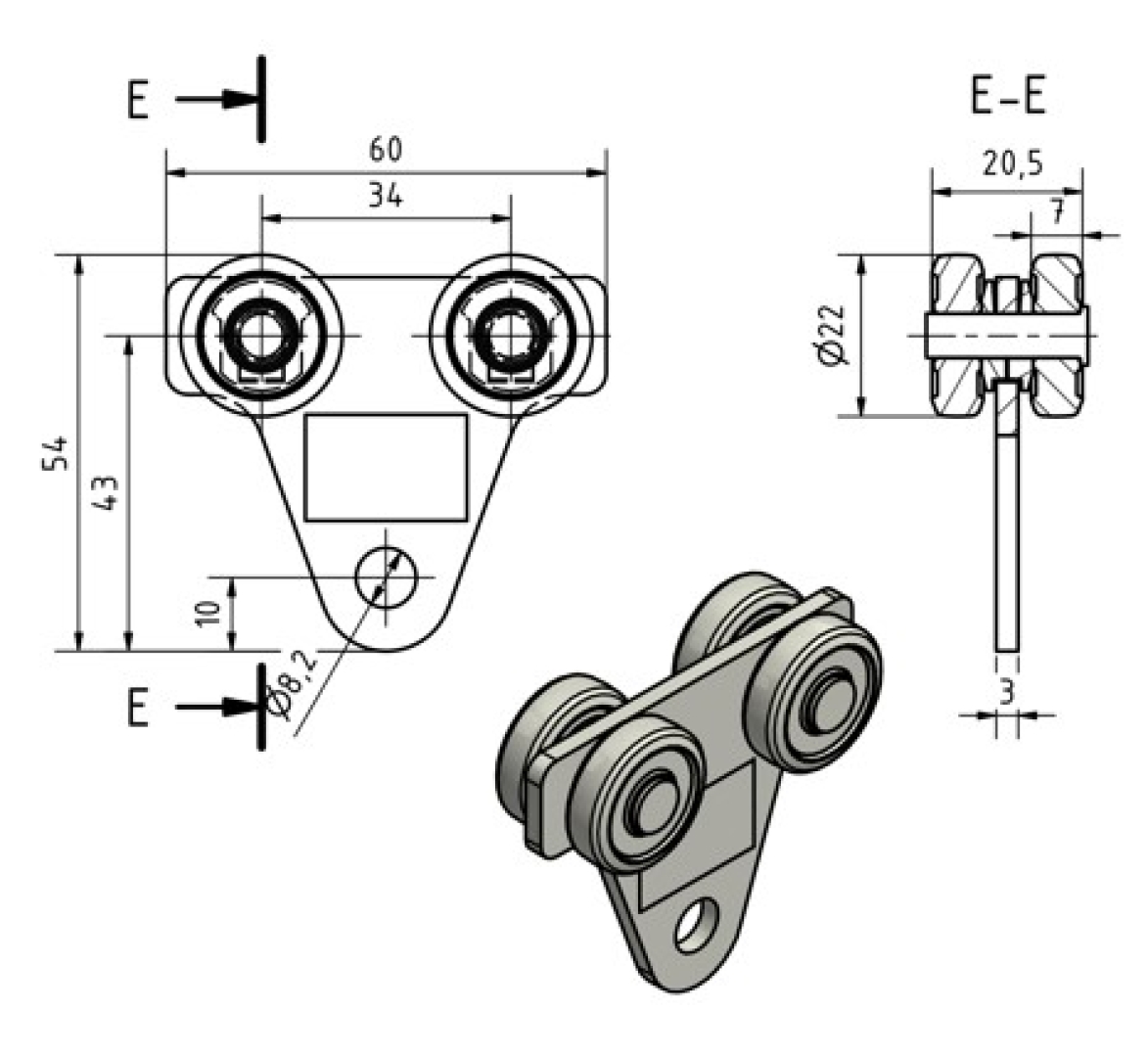 Doppelrolle Laufwagen, Rollapparat Gr.0 zum Einhängen MEA 10336831