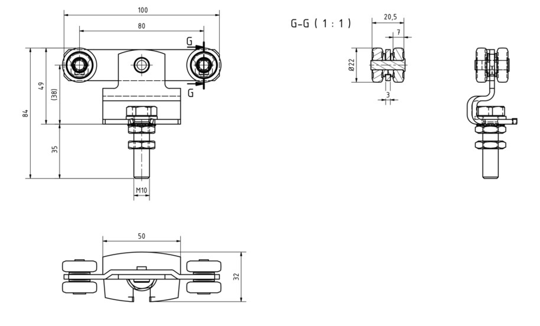- mit Gewindebolzen für die genaue Höheneinstellung der Last - Tragkraft je Doppelrolle handbetrieben 45kg