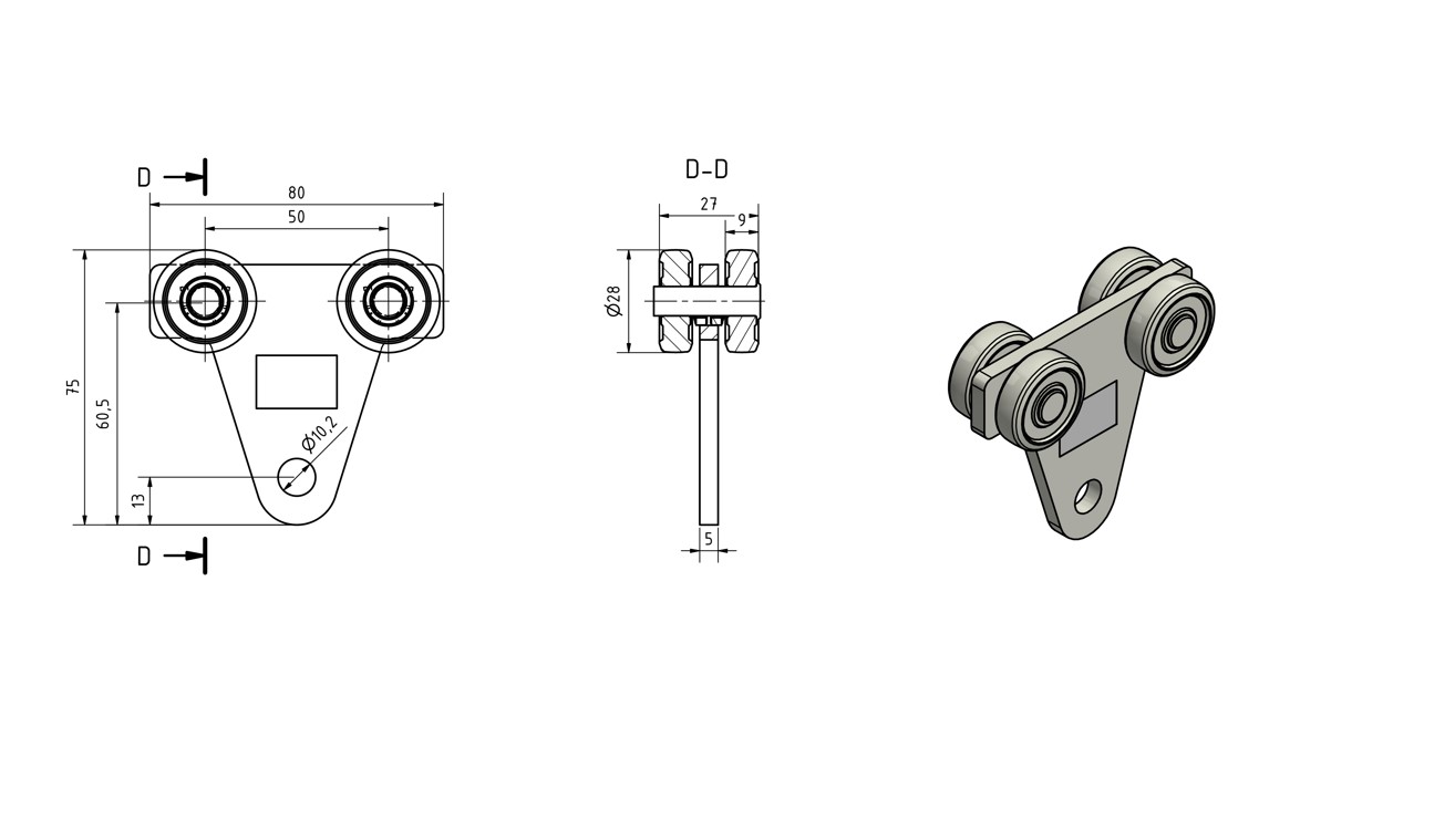 Mobile Preview: Doppelrolle Laufwagen, Rollapparat Gr.1 zum Einhängen MEA 10336834