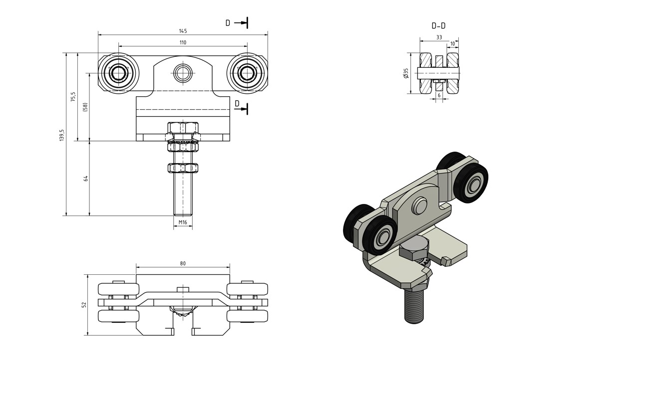 Produktinformation Doppelrolle für hängende Tore wie z.B. Scheunen-, Stall- und Hangartore