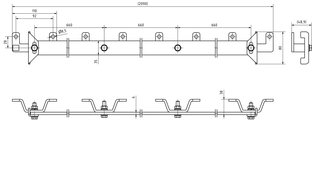 Montageset: 2 m Flachstahlschiene